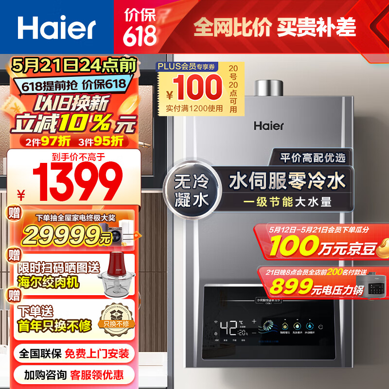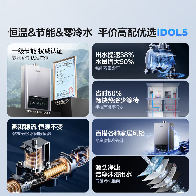 海尔(Haier)13升燃气热水器天然气【一级节能IDOL5】 水伺服恒温 双增压零冷水 小蛮腰机身 JSQ25-13IDOL5-PU1价格:1499.00元!