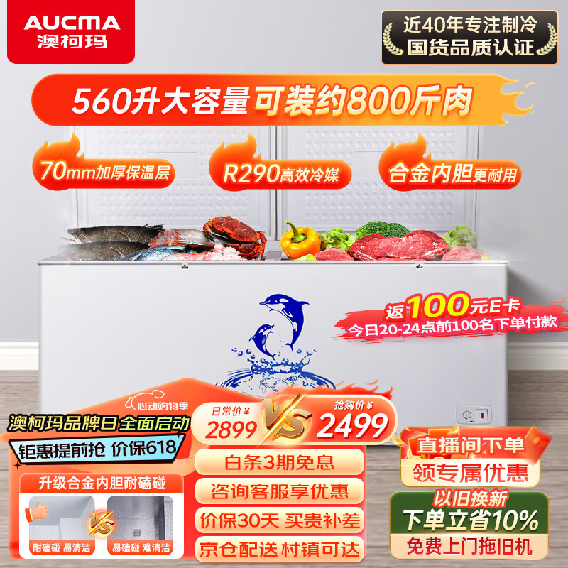 澳柯玛(AUCMA)560升家用商用大容量冰柜 卧式囤货大冰箱 冷藏冷冻转换单温顶开门冷柜 BC/BD-560TC 以旧换新价格:2899.00元!