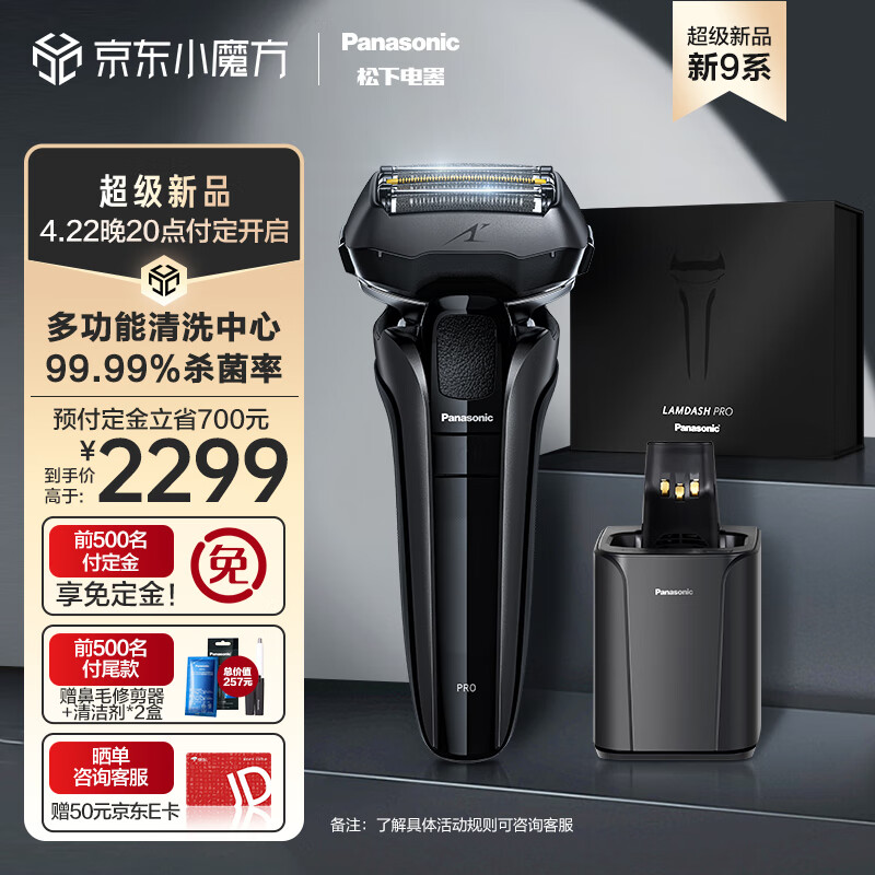 松下(Panasonic)新9系剃须刀刮胡刀电动往复式磁悬浮马达进口5刀头生日礼物男士情人节送男友送老公 黑武士 礼盒款价格:2299.00元!