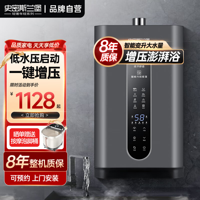 史密斯兰堡燃气热水器家用洗澡 12升双增压增容水伺服强排式低水压启动智能节能变频恒温 天然气JSQ23-12H3价格:1118.00元!