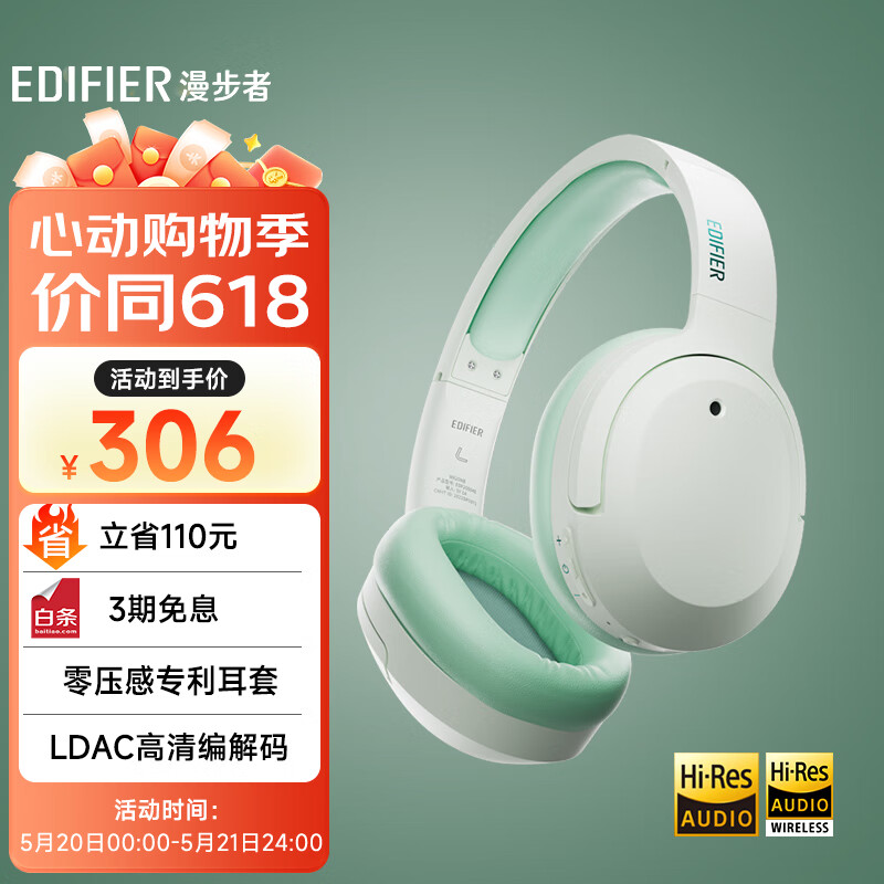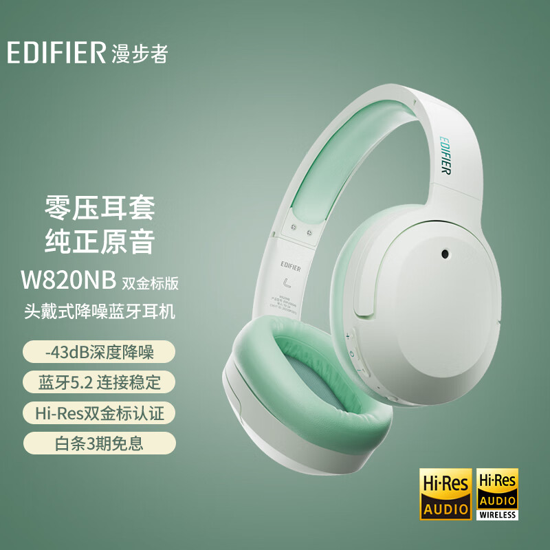 漫步者(EDIFIER)W820NB双金标版 头戴式主动降噪蓝牙耳机 蓝牙5.2 手机电脑笔记本耳机 柳芽青价格:306.00元!