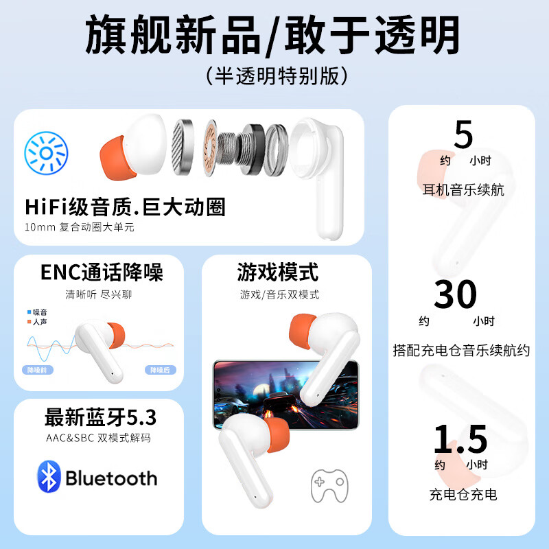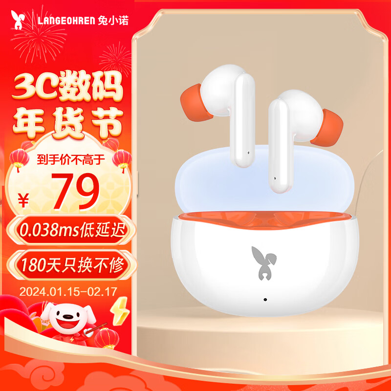 兔小诺2024款蓝牙耳机低延时游戏真无线入耳式5.3超长续航活力橙ENC通话降噪适用华为荣耀VIVO小米OPPO价格:99.00元!