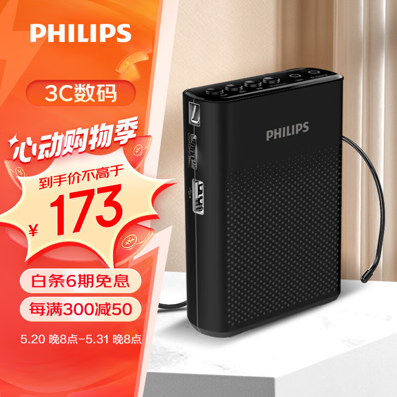 飞利浦(PHILIPS)SBM200 小蜜蜂扩音器便携插卡音箱会议扬声器麦克风喇叭喊话教师导游专用教学讲课户外小巧迷你黑价格:173.00元!