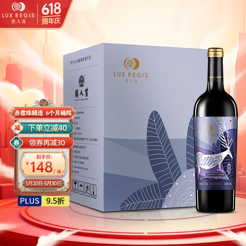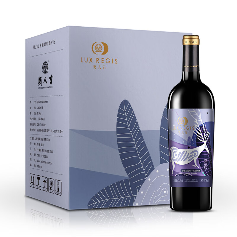 类人首红酒 宁夏贺兰山东麓产区国产柔雅赤霞珠干红葡萄酒750ml*6支整箱价格:218.00元!