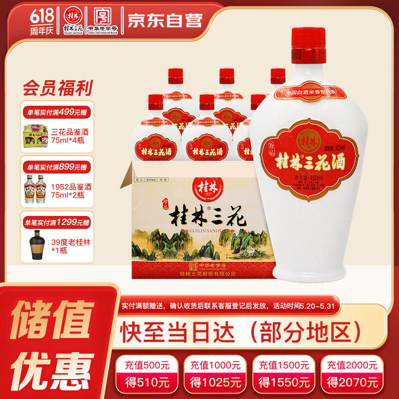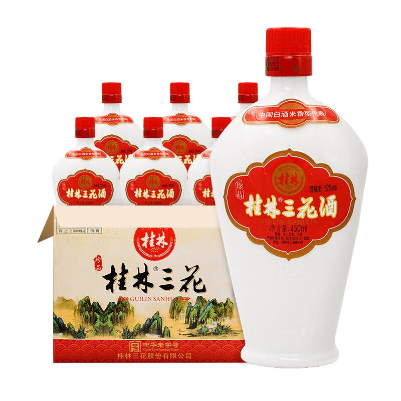 桂林三花酒 珍品乳白瓶 52度 450ml*6瓶 整箱装 米香型白酒价格参考: