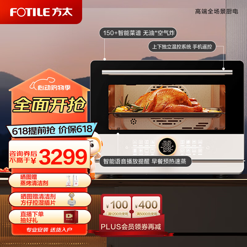 方太蒸烤箱一体机台式家用多功能32L电蒸箱烤箱一体空气炸锅蒸烤烘炸炖5合1上下独立控温小方盒01-A1.i价格:3599.00元!