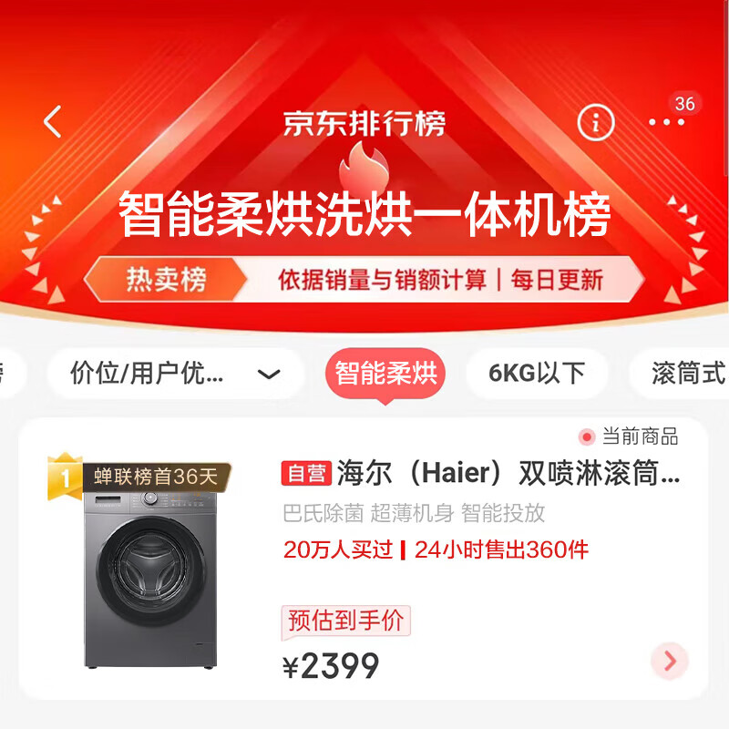 4、海尔老品牌,一直很信任,客服也很好,送货也很快,坐等师傅上门安装,颜值还是很好看的,期待(●°u°●)? 」以前一直用。