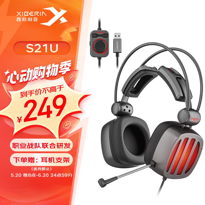 西伯利亚(XIBERIA)S21 游戏耳机头戴式电脑耳机带麦电竞耳麦7.1声道不求人吃鸡耳机 曜夜灰 升级版2代价格:249.00元!