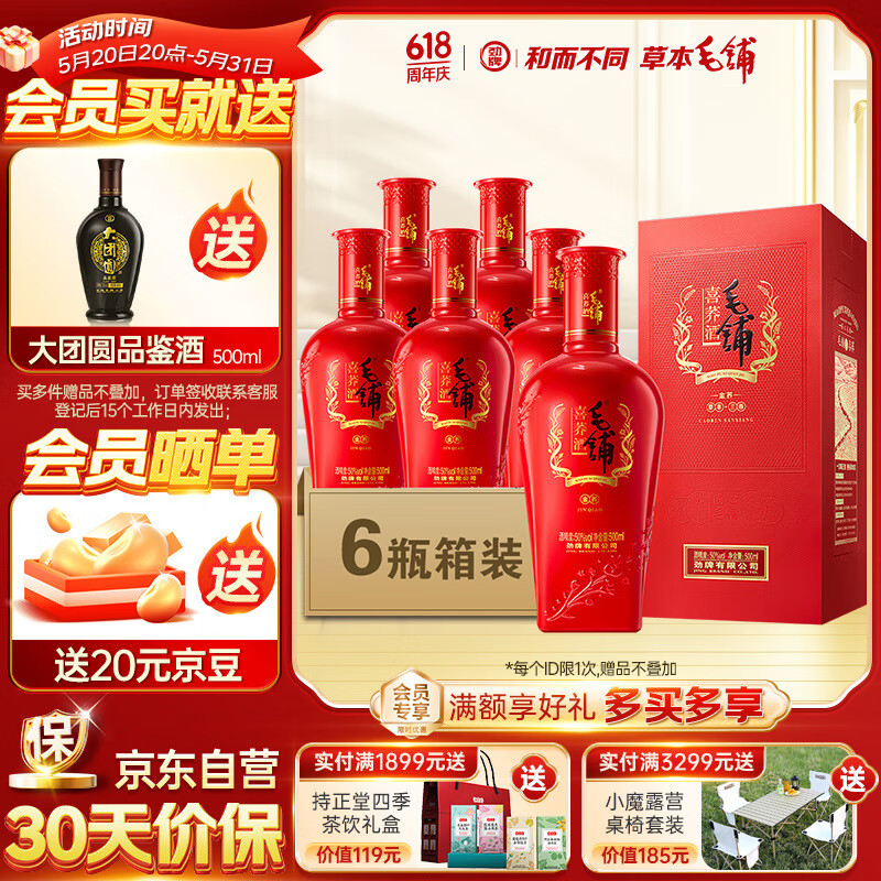 劲牌 毛铺苦荞酒 喜荞酒金荞 50度 500ml*6瓶 整箱装价格:528.00元!