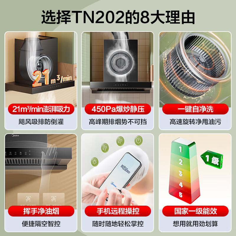 3、烟机非常漂亮,设计简约大气,挥手开关很方便,吸力大