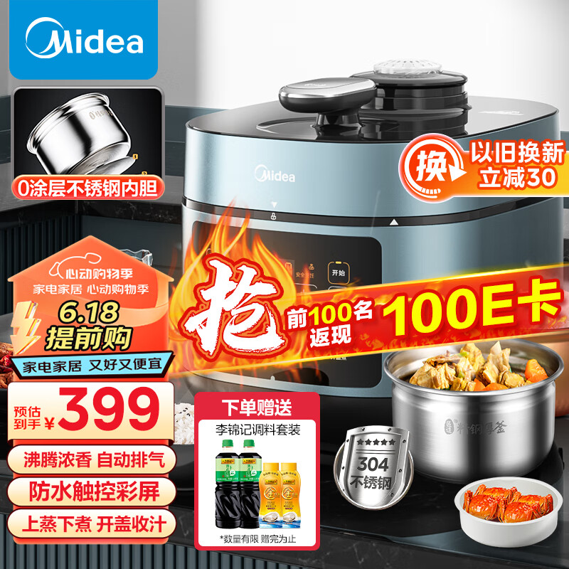 美的(Midea)电锅浓香系列高压锅智能家用5L电高压锅【0涂层内胆】高压电饭锅自动排气高压电饭煲MY-C552N价格:449.00元!