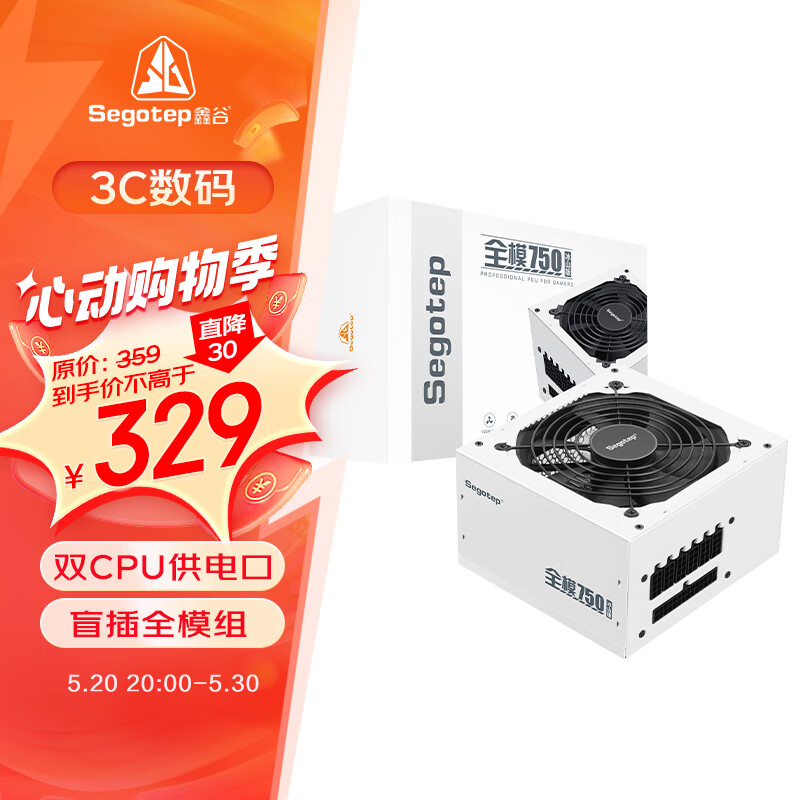 鑫谷(segotep)额定650W 全模750冰山版电源(双CPU供电口/盲插全模组白色线材/省电宽幅/12CM温控风扇)价格:329.00元!