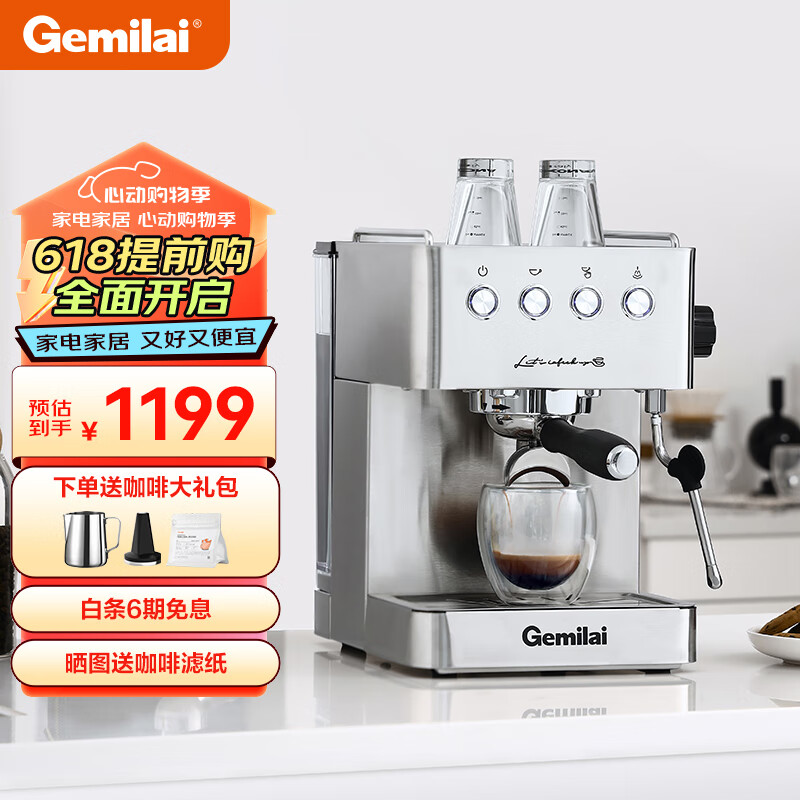 格米莱(GEMILAI)咖啡机 小型家用全半自动 意式浓缩泵压式萃取 蒸汽打奶泡 CRM3005E 不锈钢银色价格:1199.00元!