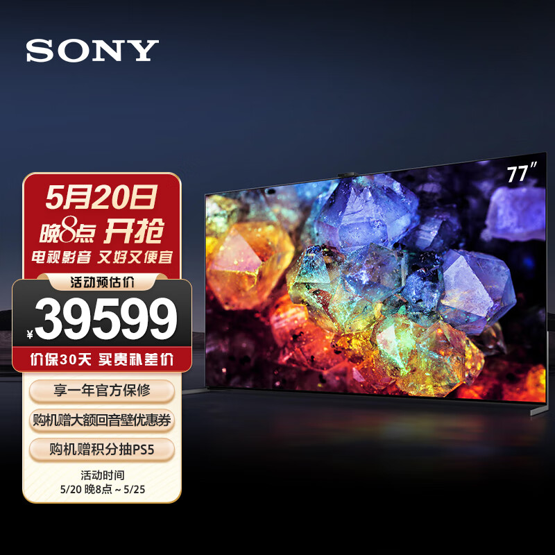 索尼(SONY)【官方直营】XR-77A95L 77英寸 新一代OLED 量子点 旗舰电视 XR认知芯片 智能摄像头 京配上门价格:39999.00元!