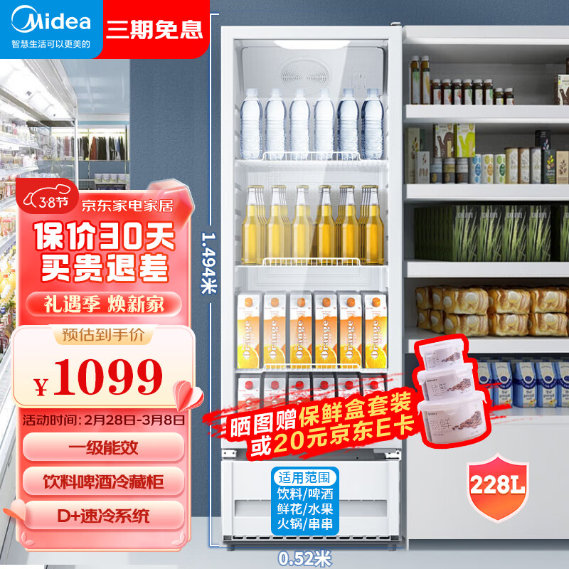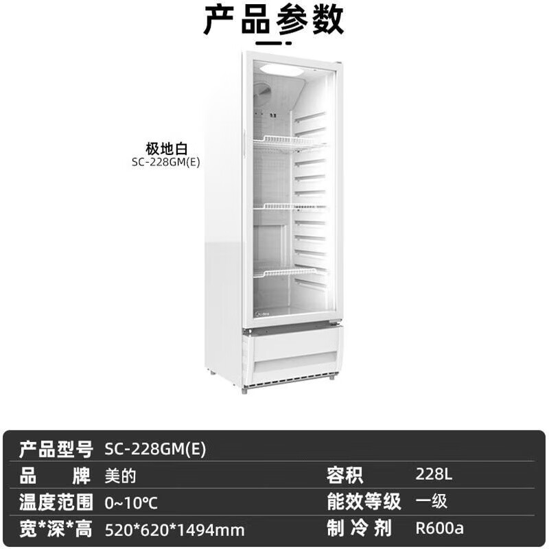 美的(Midea)展示柜商用228升风循环制冷冷藏立式单门透明玻璃门陈列柜 商超便利店啤酒保鲜饮料柜 SC-228GM价格:1159.00元!