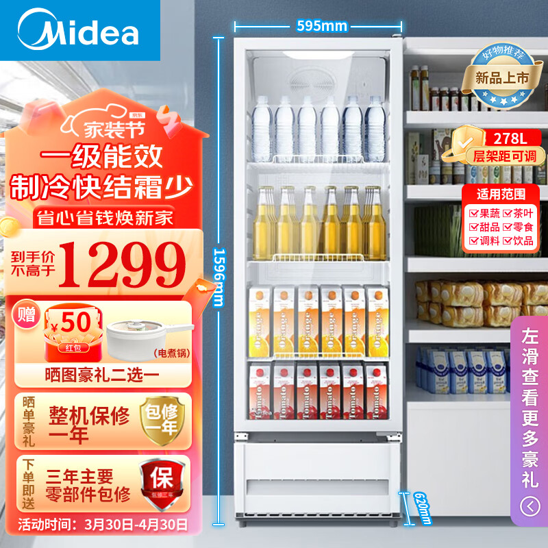 美的(Midea)展示柜 立式冷藏保鲜饮料啤酒陈列柜 超时便利店餐馆商用冰柜 278升玻璃门冰箱 SC-278GM(E)价格:1399.00元!