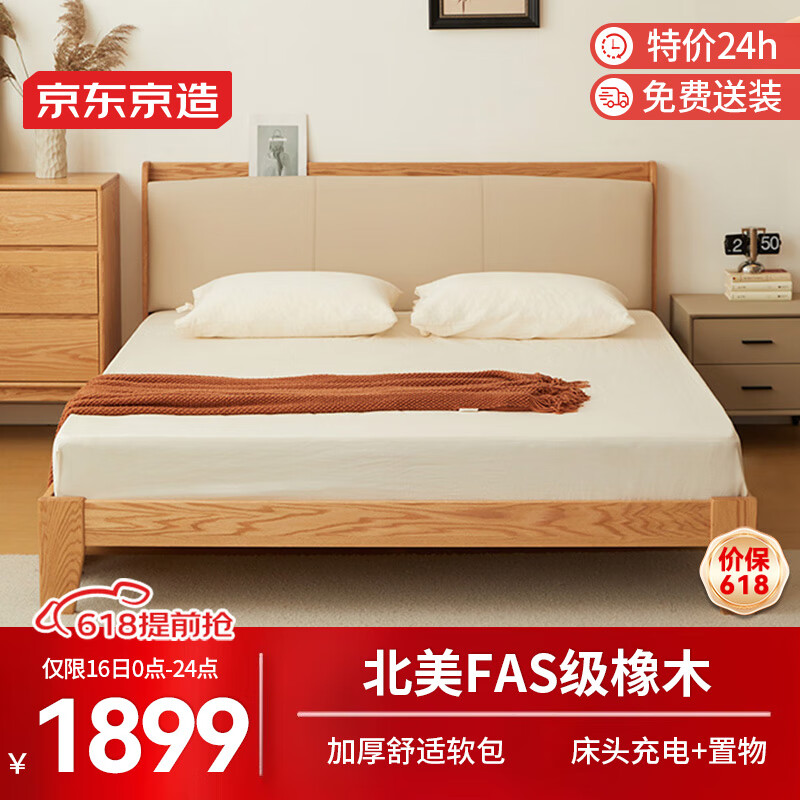 京东京造实木床 FAS级橡木|软包床头|大板厚材 主卧双人床1.5×2米BW06价格:2099.00元!