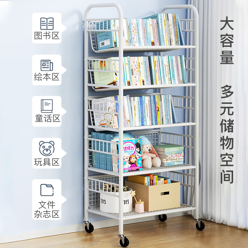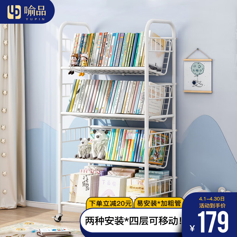 喻品书架移动落地书柜客厅杂志架置物架学生书架子 ZW72-直角4层价格:69.00元!