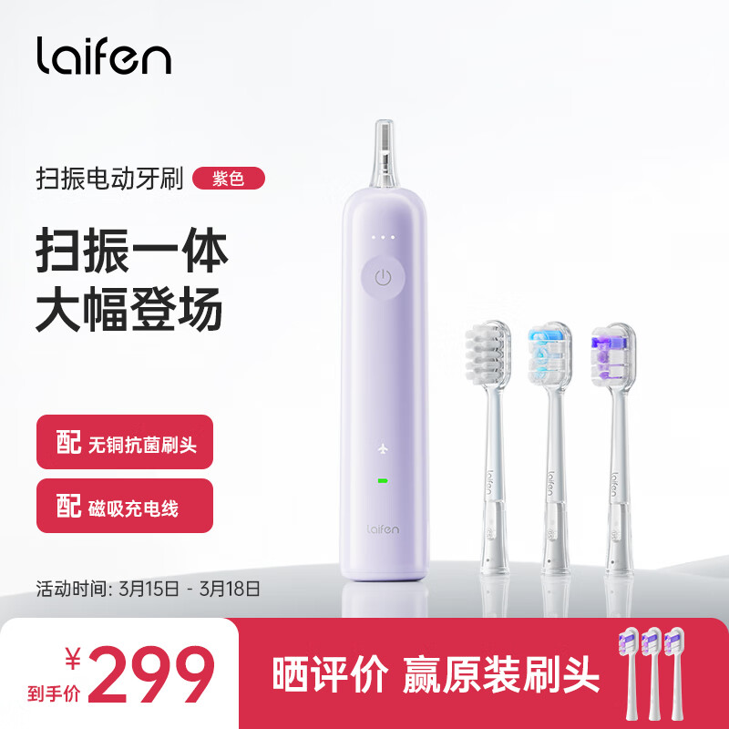 laifen徕芬科技下一代扫振电动牙刷 成人家用高效清洁护龈 轻巧便携款 莱芬送男/女士礼物 紫色价格:600.00元!