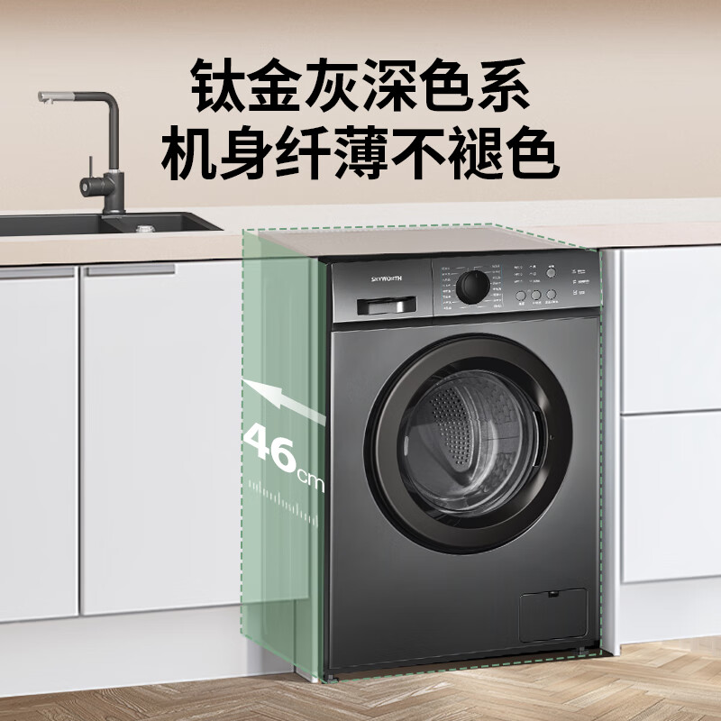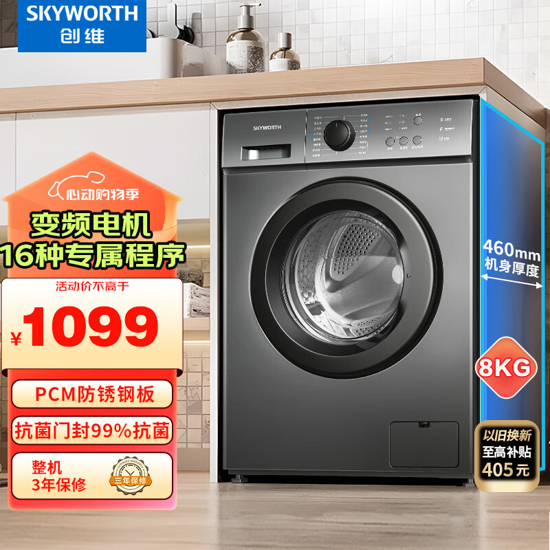 创维(SKYWORTH)8公斤滚筒洗衣机全自动 变频电机 家用租房 高温XQG80-18A价格:1099.00元!