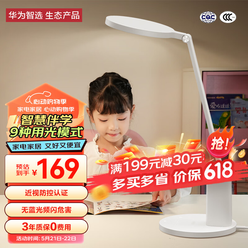 华为智选 达伦读写台灯学习护眼国AA护眼灯9种学习模式智能管理2代价格:199.00元!