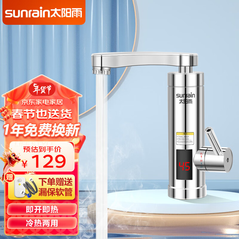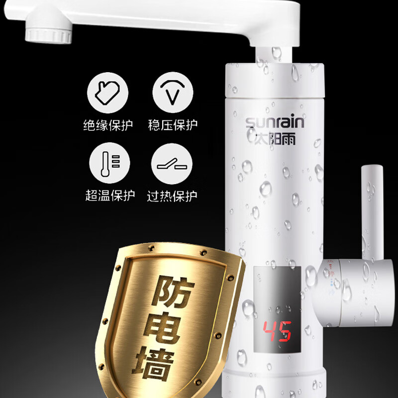 太阳雨(sunrain)电热水龙头 快速加热厨房冷热两用 即热式电热水器下进水小厨宝 浴室电镀漏保款YR-B8价格:129.00元!