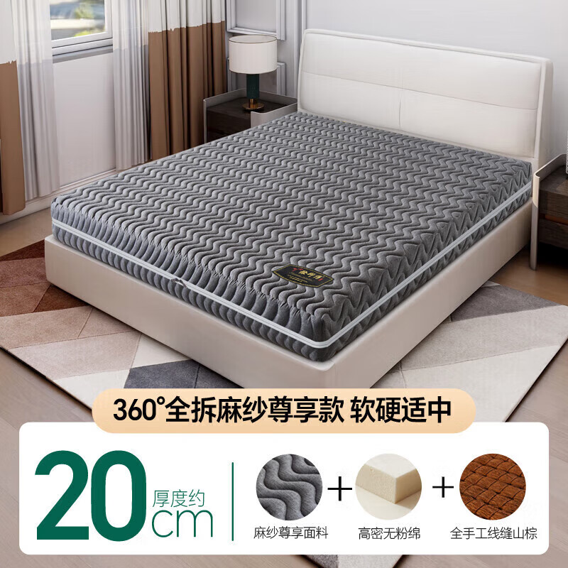 徐师傅 全手工山棕床垫硬棕垫薄厚款榻榻米床垫定制折叠1.8×2米价格:5664.00元!