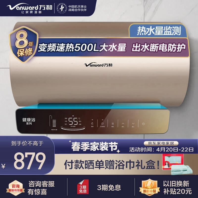 万和(Vanward)50升电热水器速热出水断电3000W一级能效10倍增容镁棒免更换水量水质监测E50-Q8D1-30价格:1179.00元!