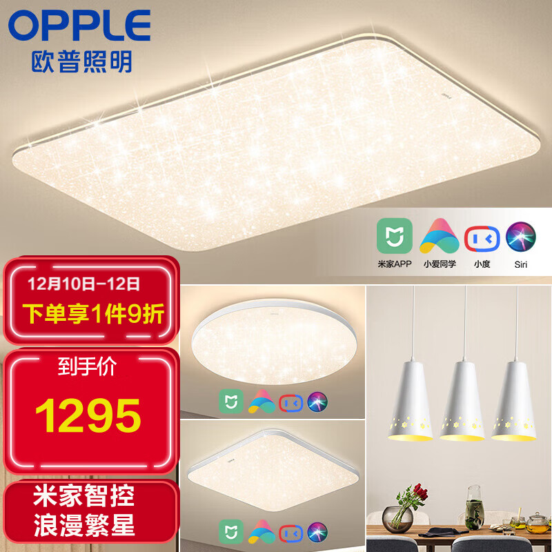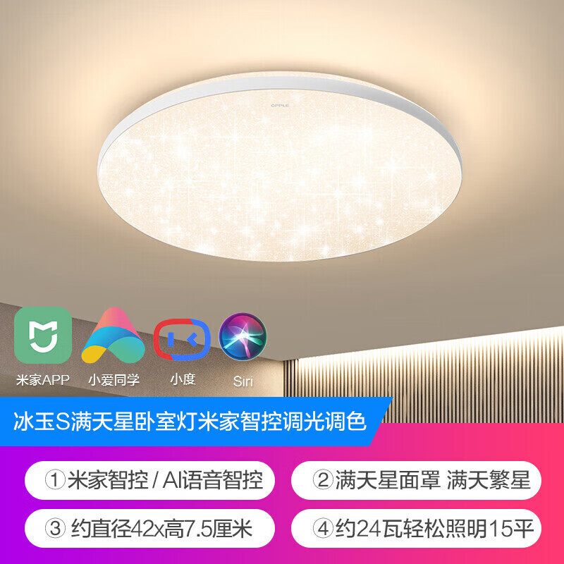 欧普(OPPLE)LED客厅吸顶灯现代简约浪漫繁星灯饰灯具 智能AI 闪闪满天星白9价格:1439.00元!