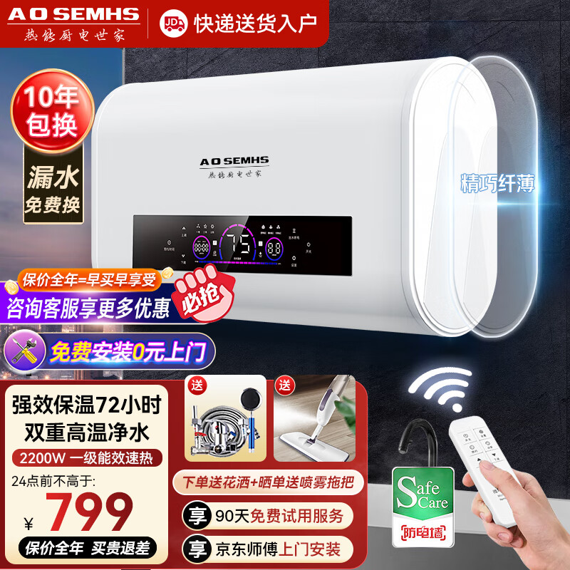 AOSEMHS扁桶电热水器家用洗澡储水式恒温一级能效80升速热2200W-DSZF-T06Y80价格:796.00元!