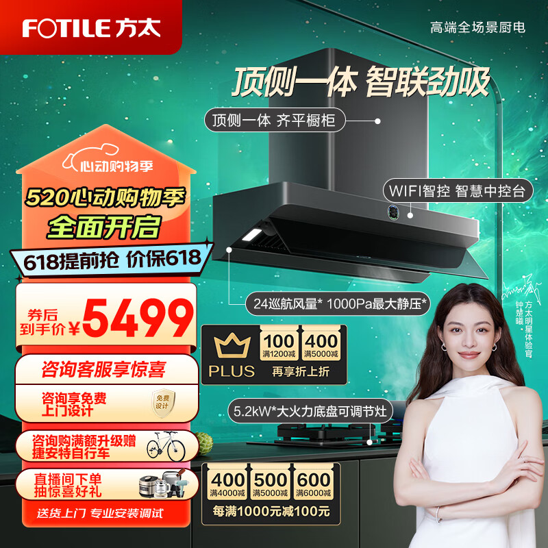 方太(FOTILE)F2抽吸油烟机灶具套装 顶侧一体欧式侧吸 变频烟灶24巡航风量5.2kW套餐01-F2.i+02-TH27B天然气价格:6099.00元!