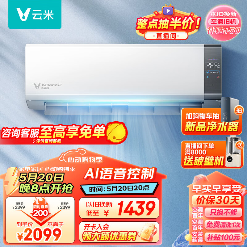 云米(VIOMI)1.5匹 智能变频冷暖 Super 2 米兰 AI语音控制 以旧换新 新一级空调挂机 KFRd-35GW/Y3YM6-A1价格:2199.00元!