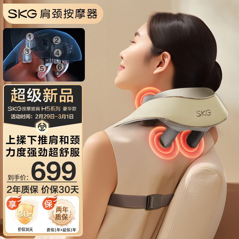 skg颈椎按摩器 按摩披肩肩颈按摩器斜方肌 腿腰颈肩膀按摩仪枕头 38女神三八妇女节生日礼物 H5豪华款价格:799.00元!