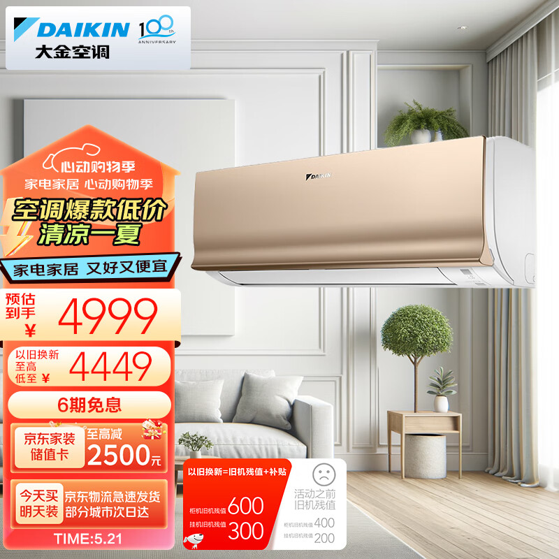 大金空调 14-21㎡适用 新二级能效 大1.5匹 变频 冷暖 家用 壁挂式 以旧换新 ATXS236WC-N价格:4999.00元!