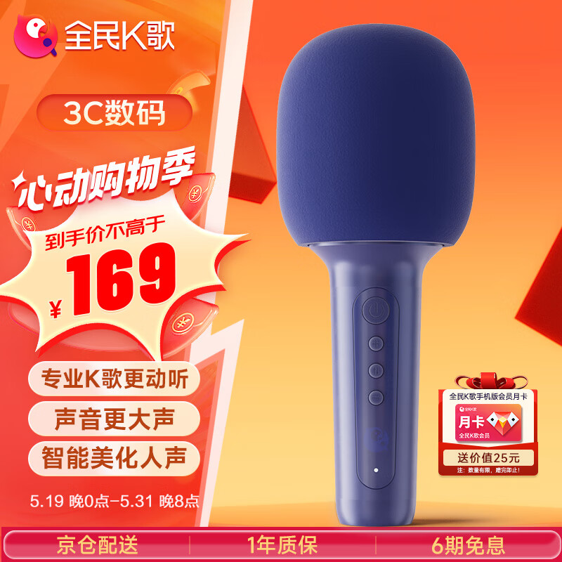 K歌 无线麦克风蓝牙音响手机K歌宝 家庭KTV卡拉OK唱歌娱乐话筒礼物露营K歌神器 户外大音量价格:169.00元!