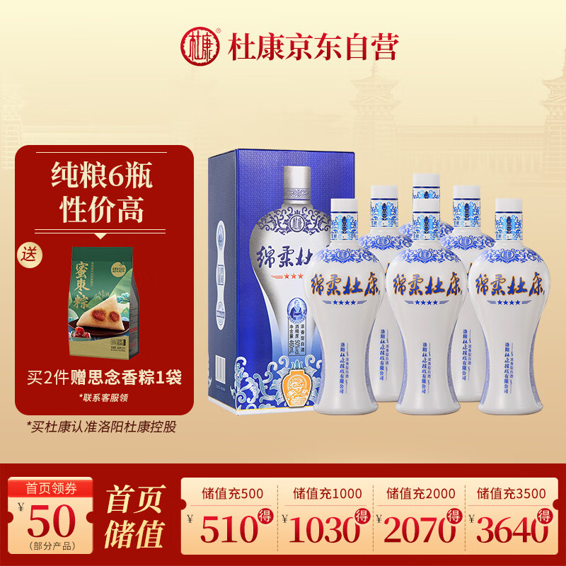 杜康绵柔杜康四星浓香型白酒50度460ML*6瓶整箱【纯粮自饮送礼父亲】价格:169.00元!