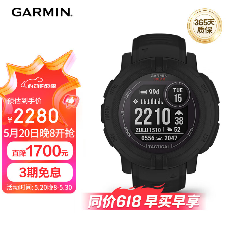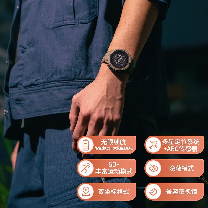 佳明(GARMIN)本能2户外探险GPS防水多星定位运动智能手表太阳能战术版暗夜黑价格:2280.00元!