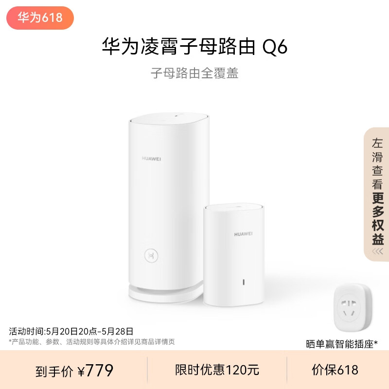 华为凌霄子母路由 Q6(1母1子套装)AX3000Mbps 千兆路由器 全屋WiFi 6+ 电力线版 无线穿墙王 电力猫价格:699.00元!