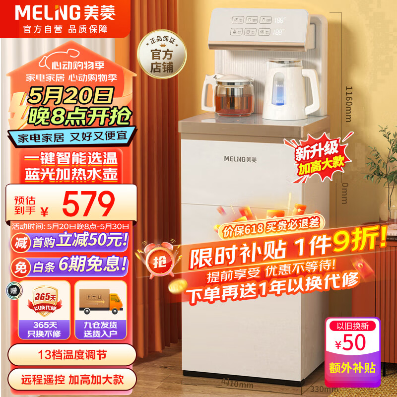 美菱(MeiLing)茶吧机家用饮水机智能多功能遥控茶吧立式桶装水下置式高端大款【温热型】白金系列MY-C561价格:699.00元!