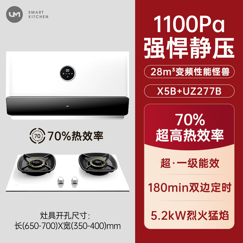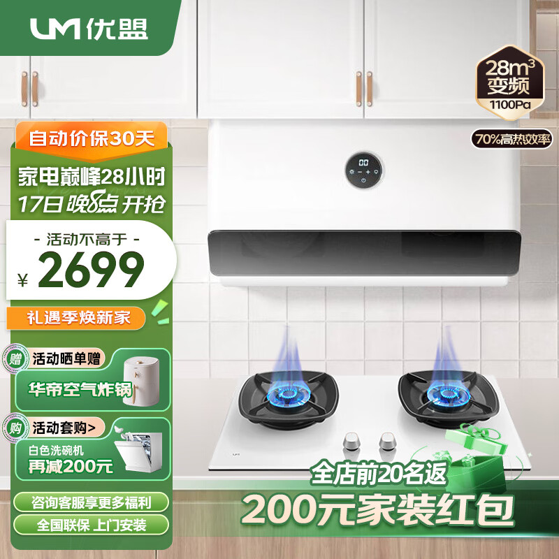 优盟(UM)抽油烟机超薄近吸变频28风量 80cm小尺寸白色油烟机灶具套装 家用大吸力烟灶套装自动清洗 天然气价格:2699.00元!
