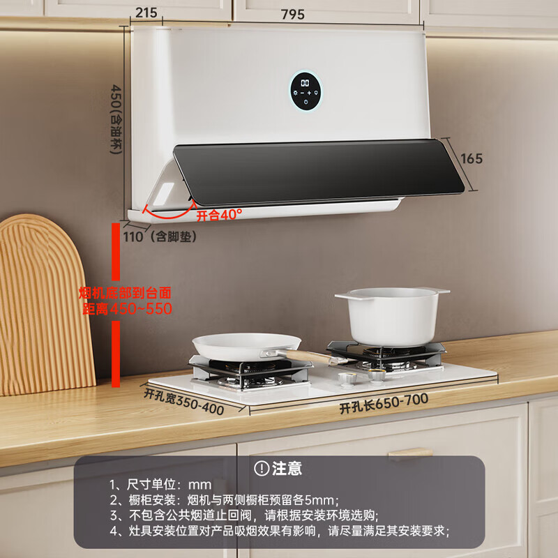 烟机安装尺寸:750±50mm