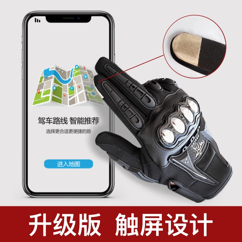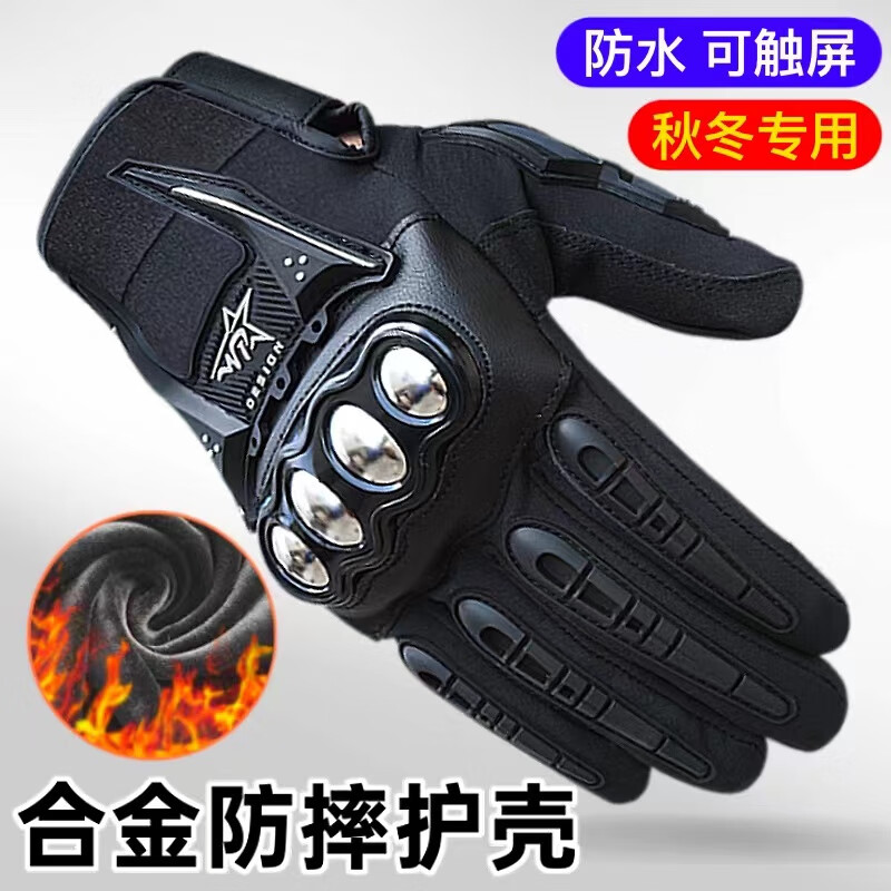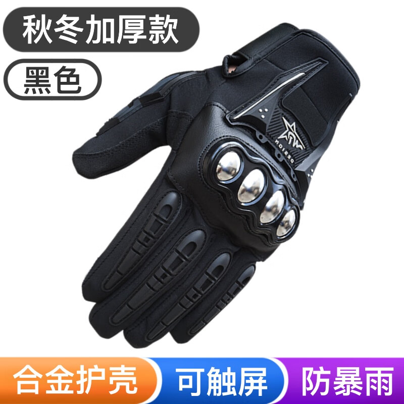 博沃尼克 摩托车手套冬季防风保暖可触屏防水骑行防滑全指男女通用黑色L码价格:69.90元!