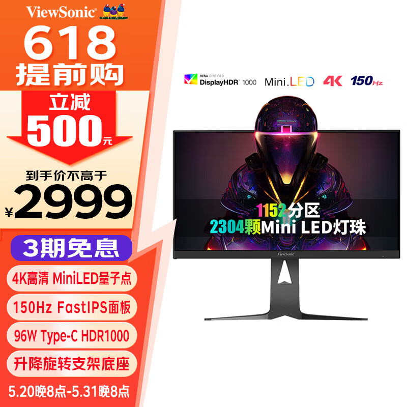 优派27英寸4K MiniLED FastIPS 150Hz Type-C96W HDR1000 爱眼低蓝光 猛擎电竞显示器 VX2781-4K-PRO价格:3699.00元!