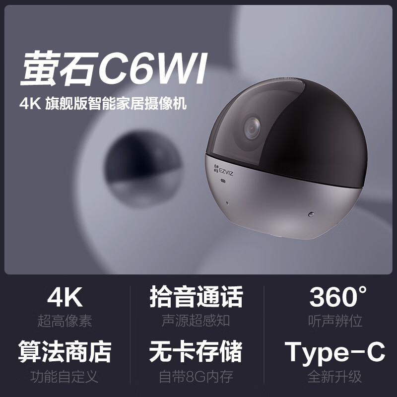 萤石(EZVIZ)C6WI 4K+128G视频监控专用卡 800万超高像素 听声辩位 内置8G存储价格:1009.00元!