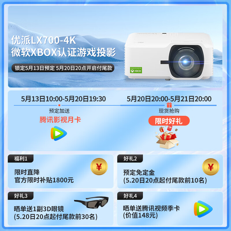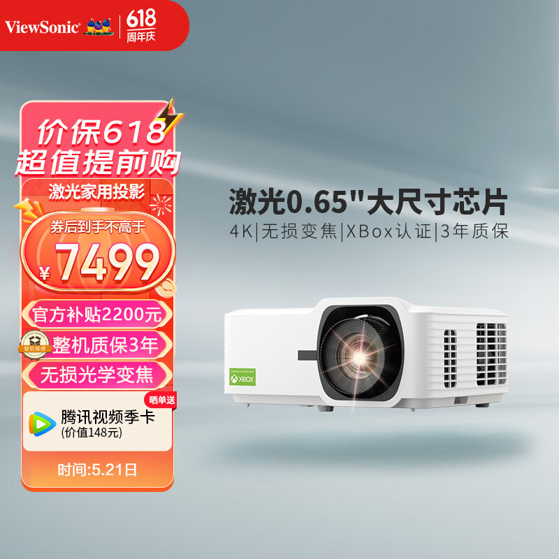 优派LX700-4K投影仪家用 激光投影机 家庭影院 游戏电竞(微软Xbox认证 0.65''大芯片 无损变焦)价格:9699.00元!