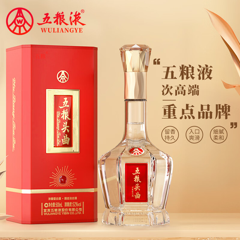 五粮液五粮头曲 纯粮食 浓香型白酒52度500ml 端午节送礼佳选价格:239.00元!