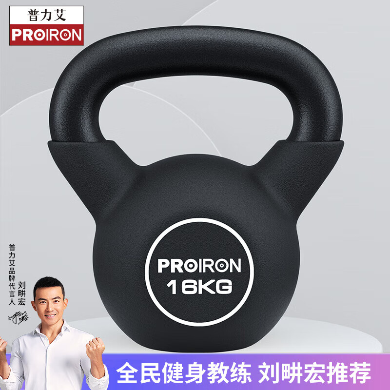 PROIRON普力艾 壶铃男士提壶哑铃壶健身壶铃铸铁深蹲练臀器械浸塑 16KG价格:329.00元!