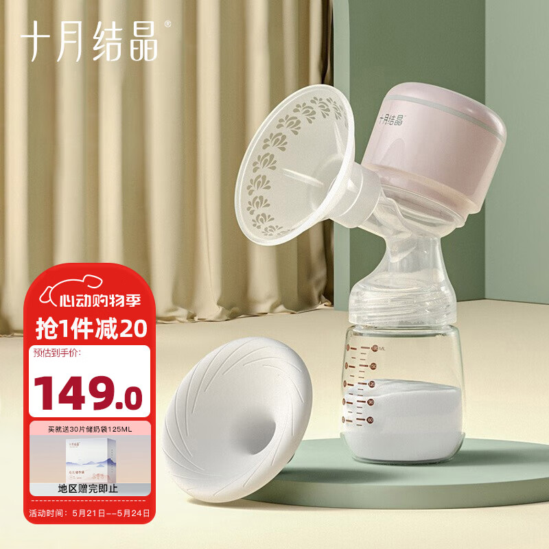 十月结晶电动吸奶器一体式自动变频挤奶器便携吸奶器无痛按摩拔奶器价格:179.00元!
