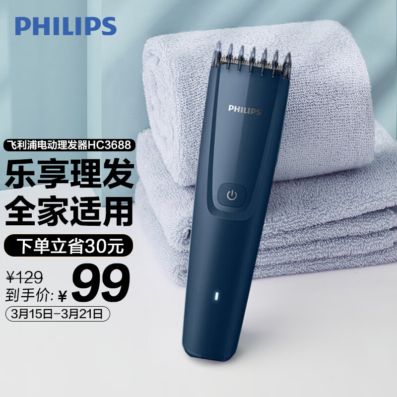 飞利浦(PHILIPS)智能电动理发器成人儿童电推子HC3688价格:99.00元!