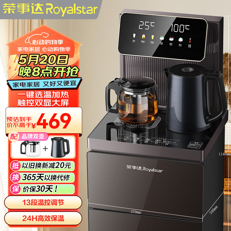 荣事达(Royalstar)茶吧机高端多功能触控饮水机双温双显双出水口大款全自动控温立式泡茶机温热型CY829价格:499.00元!